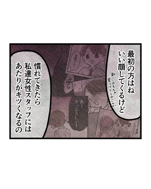 嫌なお局さんの見本のような加藤さん。お局さん図鑑に載れそうなくらい典型的に嫌な人ですね。これからえみさんのアルバイトはどうなっていくのでしょうか。