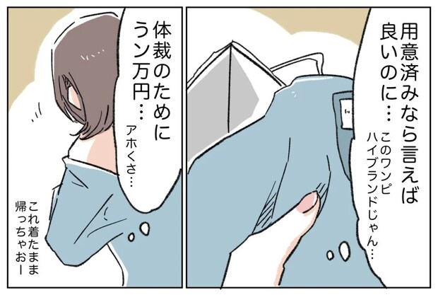 紙袋の中には清楚なワンピースが入っていました。やけに手触りが良いと思ってタグを見ると、フリーターの私にはとても買えないハイブランド品。用意しているならはじめから言ってくれればいいのにと思ってしまいました。それにしても、体裁のためだけに何万円もかけるなんて、うちの母って本当にあほくさい。