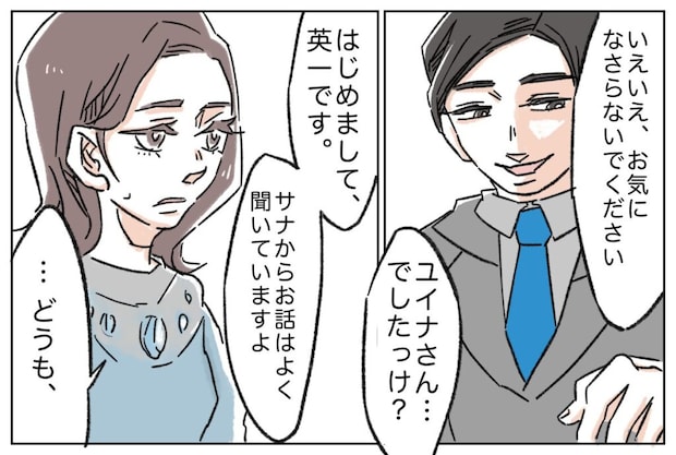 英一さんは慣れた様子で「いえいえ、お気になさらないでください」と微笑むと、私の方を向き「ユイナさん・・・でしたっけ?はじめまして英一です、サナからお話はよく聞いていますよ」と声をかけてくれました。姉がいなければ一生出会わなかったかもしれない人。不出来な私にも丁寧に挨拶してくれる姿に、やっぱりできた人は違うなと感じました。