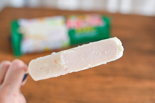 シャリっとした口あたりとやさしい甘みを楽しめるミックスフルーツ味のアイスもコーティングと相性抜群。後味はすっきりとしているので駄菓子のようなアイスでありながらも、甘すぎることなくさっぱりと楽しめます。