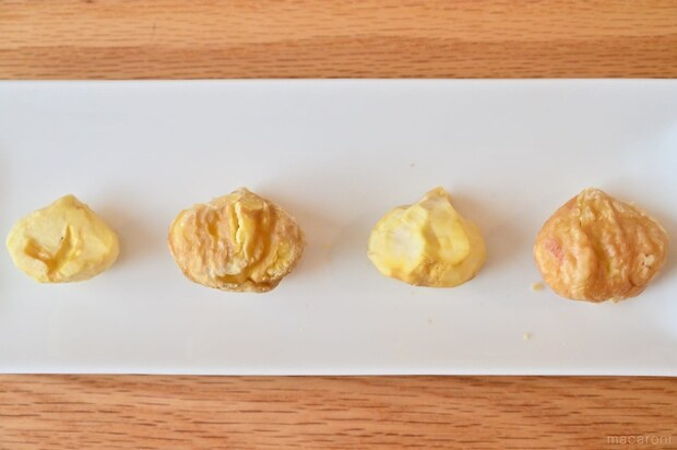 冷凍後はお湯に浸けたり煮たりしますが、なかの栗は生、あるいは半生状態です。料理に使う際は、必ず加熱調理をしましょう。