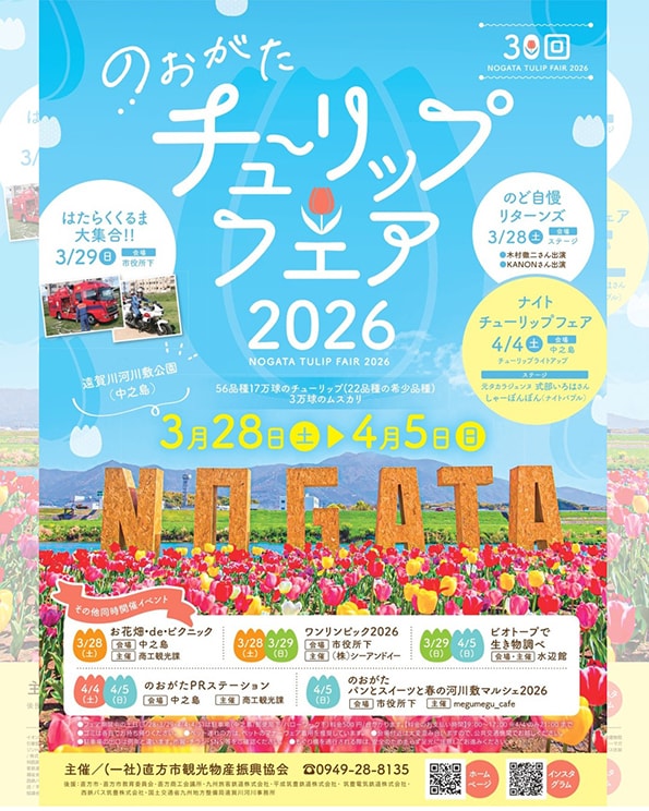 The post 【直方】3月28日(土)から遠賀川河川敷公園にて「のおがたチューリップフェア2026」が開催されます! first appeared on 筑豊情報マガジンWING.