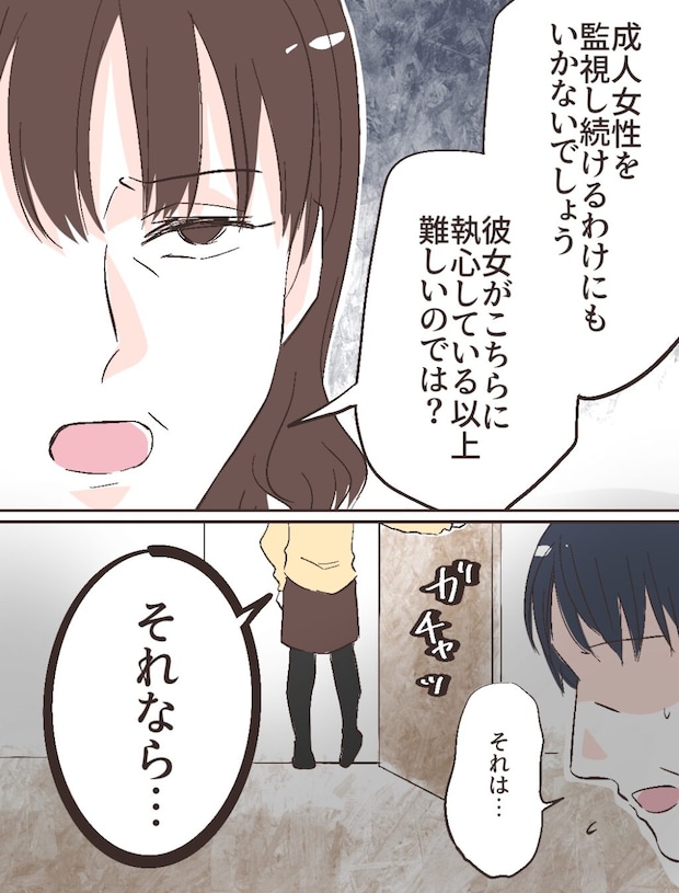「成人女性を監視し続けるわけにもいかないでしょう。彼女がこちらに執着している以上、難しいのでは?」と指摘しました。実際、何も対処できていないのですから、義父は言葉に詰まってしまいました。