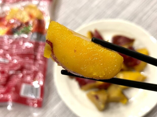 “甘煮”と名前に付いている点や原材料から甘ったるい味を想像していましたが、意外にもさつまいもの自然な甘味がメインの味わい!しつこい甘さがないので、食べやすさもありました!