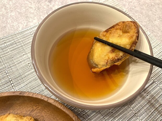 天つゆにもつけて食べてみましたが、天つゆの塩気と旨味がさつまいもの甘味と絶妙にマッチ!和食らしい上品さがありとっても美味しいです♪