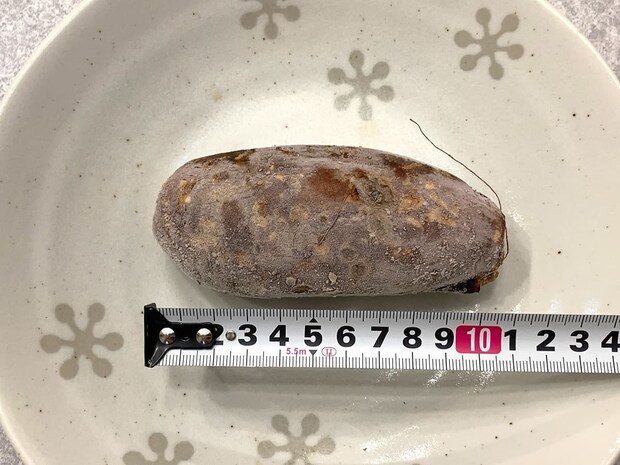 食感としては水分が少なめで若干のモサモサ感あり。しかし、ねっとり系の焼き芋に比べると軽い甘さで後味がしつこくなく、食べやすい印象でした。