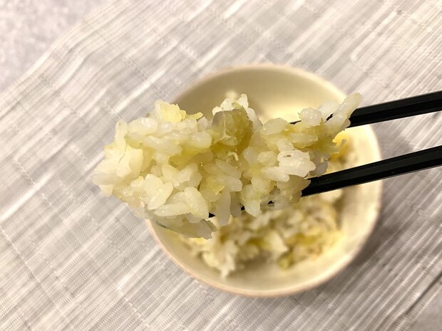 さつまいものほんのりとした甘さが、味付けされたご飯の塩気と見事に調和!調味料に大きく頼らずともやさしい甘さを堪能でき、シンプルながら飽きの来ない味に仕上がりました。