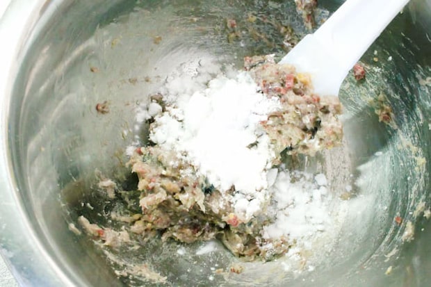 4. ボウルで3、みそ、しょうが汁、こしょうを粘り気が出るまで混ぜ、片栗粉を加えてさらに混ぜます。