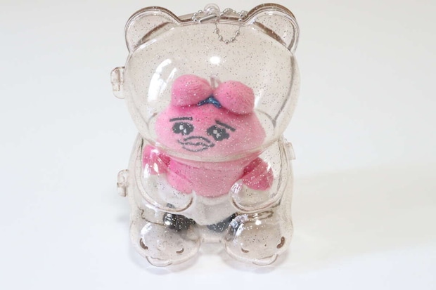 テディベア型のケースキーホルダーです。価格は220円(税込)。