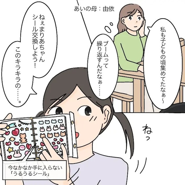 私は由依。夫と小学3年生の娘あいと暮らす主婦です。ある日の昼下がり、学校から帰ってきたあいとその友達が、今子どもたちの間で流行っているシール交換をしに家へ遊びに来ました。