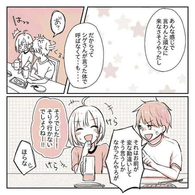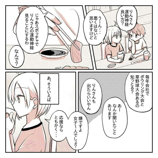 ゆーさんとりんさんは、会話もはずんでたのしい時間を過ごしていました。そんな中でりんさんが、ゆーさんに「シゲさんに頼まれたから草野球に顔を出してほしい」と言われた日の話をすると…。