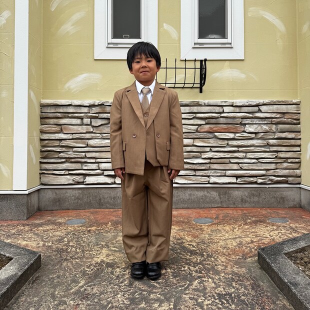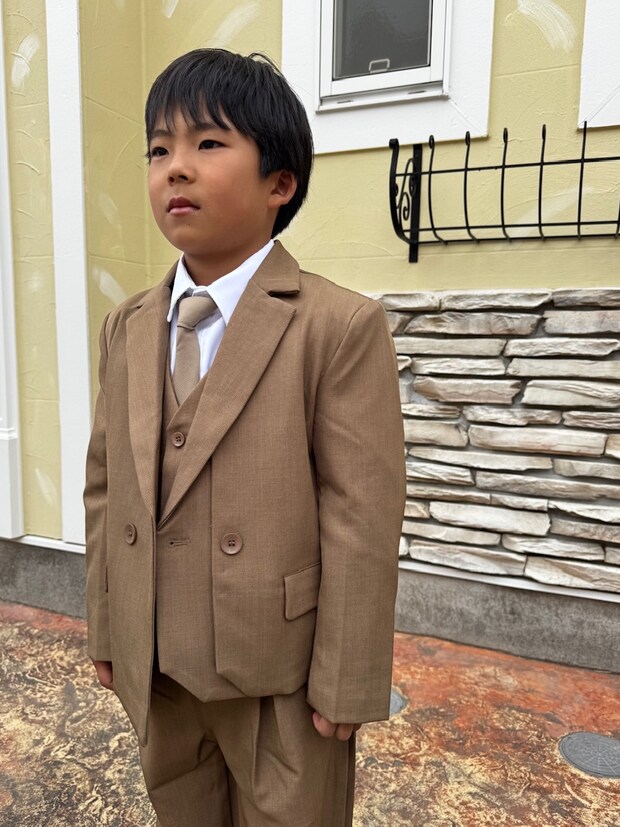 男の子の入学式コーデ!ライトブラウンのスーツで個性を演出