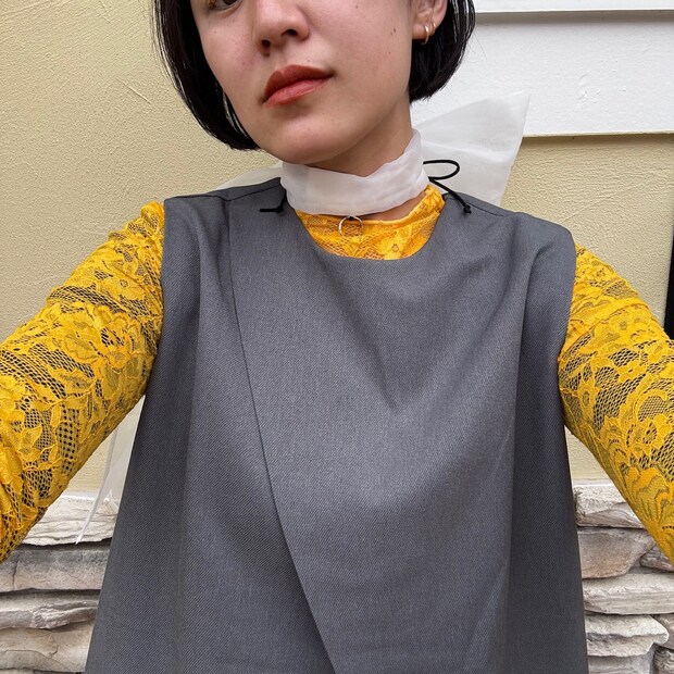 濃いめのグレーカラーにイエローカラーを付け足す事で、フォーマルだけど個性も出しつつ。