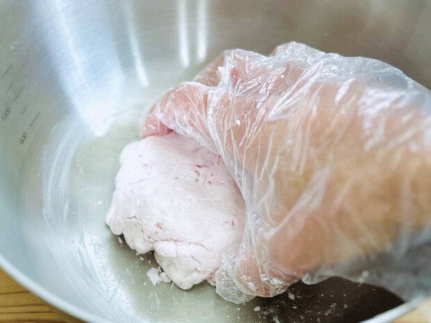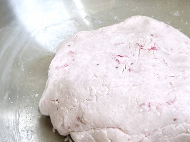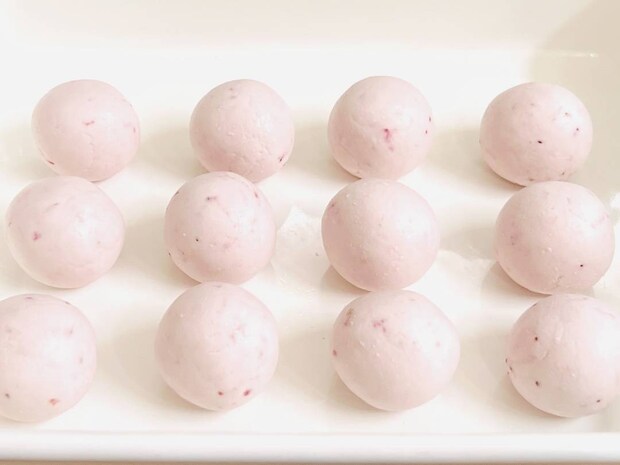 いちごの水分量が多い場合は、適宜白玉粉を足して、耳たぶくらいのやわらかさにしてください。