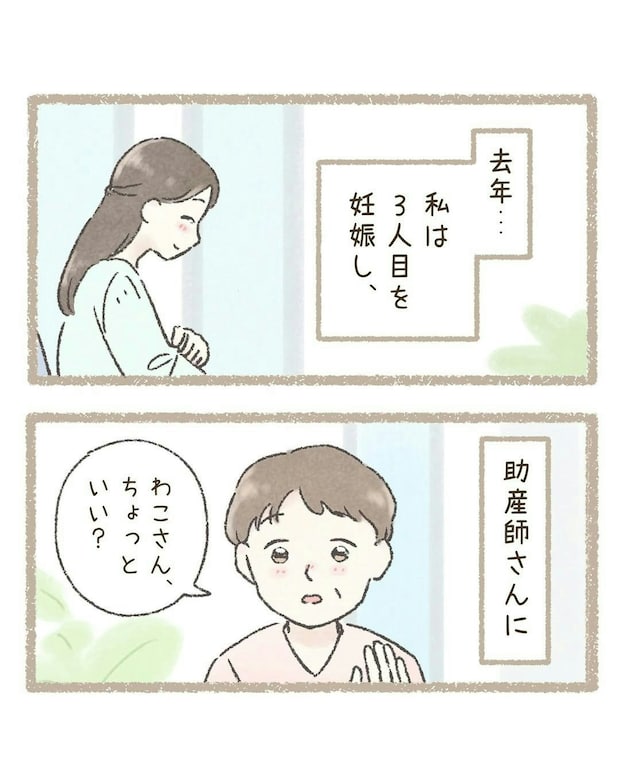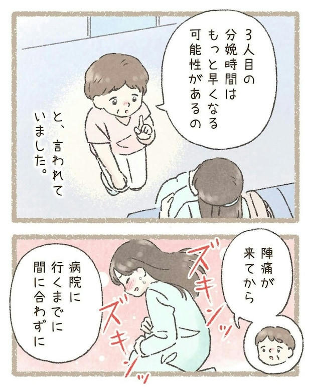 万が一に備え、わこさんは助産師さんから出産のアドバイスを授かります。このときは、「まさか自分が」と軽い気持ちで話を聞いていたそうですが、実践しなければいけない場面が訪れます…。