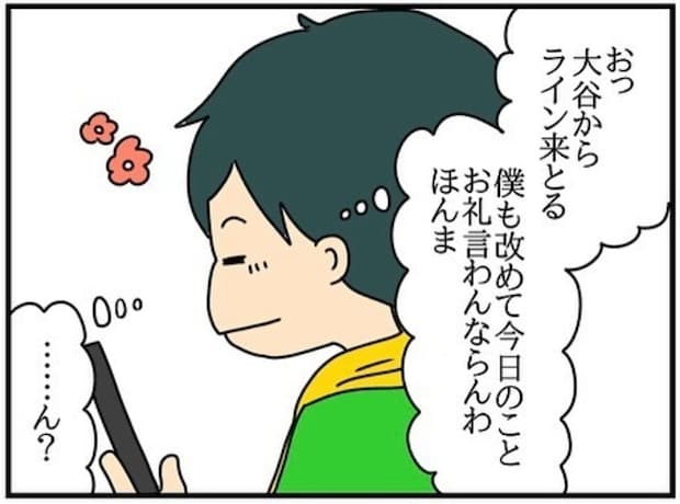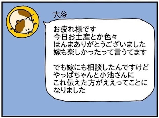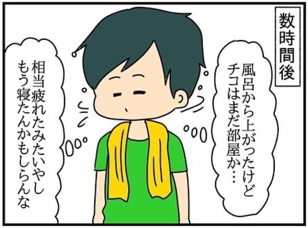 夫がお風呂から上がってもチコちゃんは部屋から出てきませんでした。今日のお礼にと大谷さんへメッセージを送ろうとします。