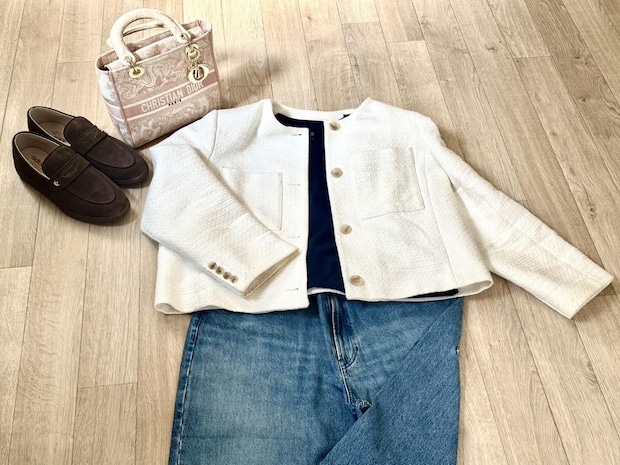 少しかっちり目のデザインのジャケットを合わせ、足元はヒールやローファー、そしてワンポイントにハイブランドのバッグなどをもってくると、洗練されたイメージに仕上げることもできますよ!
