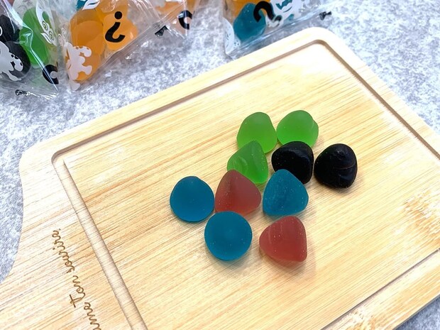 筆者も青色と黒色のグミを食べてみましたが、大人でも何味かわかりませんでした…笑