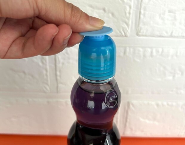 グレープ味のサイダーで、炭酸飲料が好きな方にはぴったり♪昔ながらのラムネ用の瓶なので、上からビー玉を押し込んで開けます。