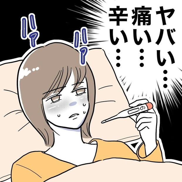 高熱も出ている様子です。こんな状態では、一人で受診はつらいですよね。産院を受診するのであれば、夫に車を出してもらうのがよさそうです。