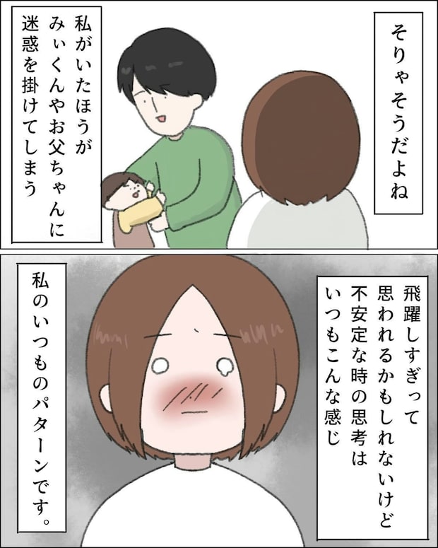 自分でも「今は不安定な時期だから」と分かっていても、ネガティブな感情の連鎖から抜け出すのは簡単ではありません。そんな中で、自身の子ども時代の経験が影響していることに気づきます。しかし、みぃくんは自分の子どもであっても別の人格をもつ存在。自分が満たされなかった思いを重ねるのではなく、ありのままの子どもを見つめ、感じ方や選択の違いを受け止めることの大切さに気づいていきました。