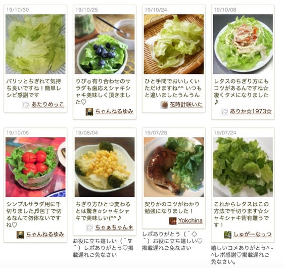つくれぽ(みんなの作りましたフォトレポートのこと)にも、「ひと手間でおいしくいただけますね^^ いつもと違いました」「レタスのちぎり方にもコツがあるんですね。凄くタメになりました」など、レタスをおいしくちぎる方法を絶賛する声がたくさん届いています。