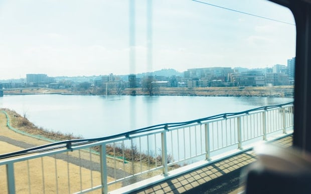 成城学園前駅から先は、常に車窓の景色を楽しむことができる。普段は見過ごしてしまいがちな街なかの景色を眺めていると、視界が広がり、多摩川を見渡す気持ちのいい風景が