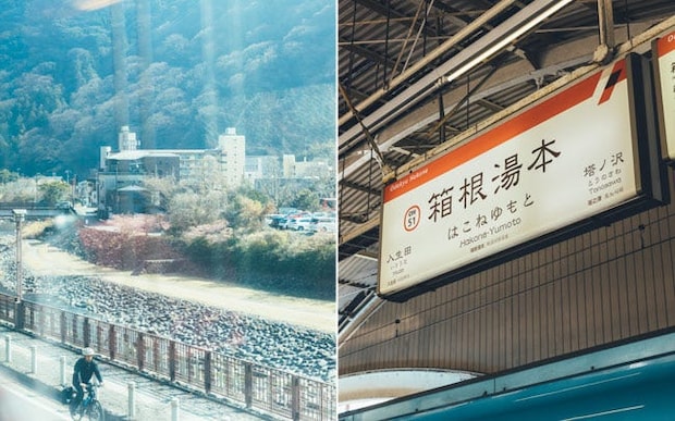 山々がさらに近くに見えるようになり、沿線の緑の豊かさを実感。箱根湯本駅に到着する直前には温泉街らしい風景も。北千住駅から約2時間、変わりゆく車窓をじっくりと堪能