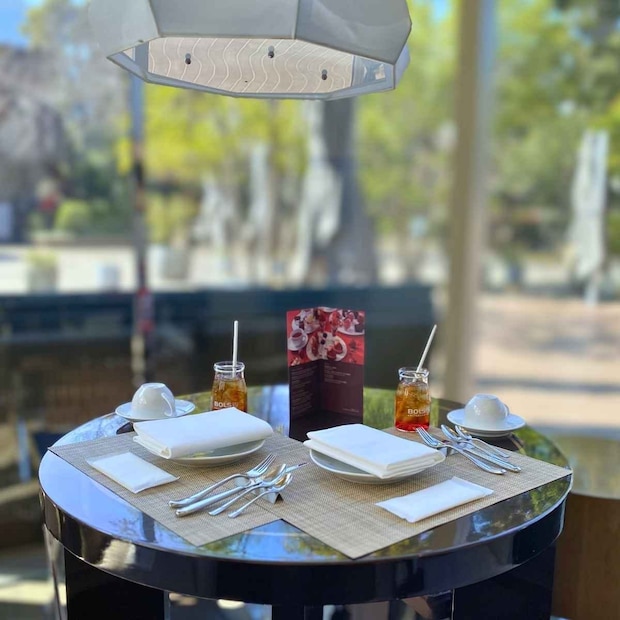東京マリオットホテルの1階ロビーに広がる「Lounge&Dining G」は、開放感のある落ち着いた空間。窓際の席に案内されると、御殿山庭園の緑を望む穏やかな景色が広がります。