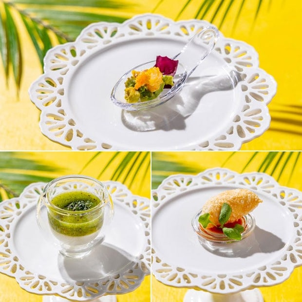 さらに、ぷりっとした小エビとまろやかなアボカドを組み合わせた「小エビとアボカドのサラダ」や、キウイフルーツ、ルッコラ、はちみつヨーグルトを用いた爽やかさと甘みが溶け合う「キウイとルッコラのスムージー 蜂蜜ヨーグルトとともに」、自家製のトマトソースとともにいただく「揚げカルツォーネ」も召し上がれ。