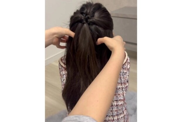 ④ ③より下の位置の毛束を後ろで結んでくるりんぱ