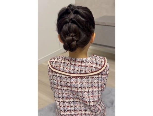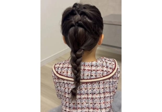 ⑤ 全体を三つ編みして毛先は輪っかで結ぶ