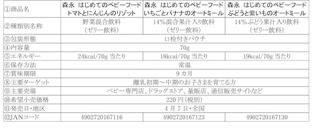 「森永 はじめてのベビーフード」シリーズラインナップ