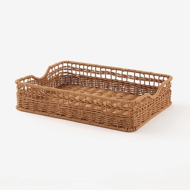 洗えるPPラタンバスケット ワイド浅<幅36.5×奥行26.5×高さ8cm> 1,639円 ラタン調の美しさと洗える便利さを両立したおしゃれな収納バスケット