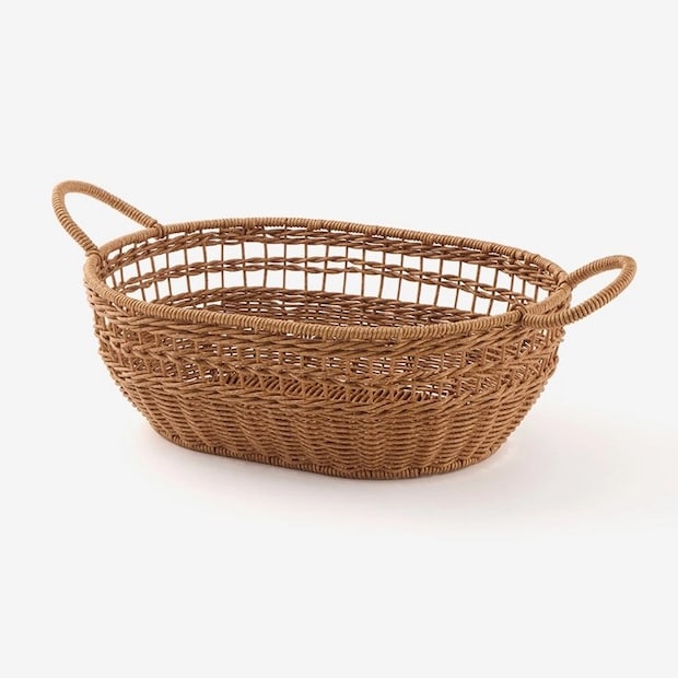 洗えるPPラタンバスケット オーバル<幅36.5×奥行26.5×高さ12cm> 1,969円 ラタン調の美しさと洗える便利さを両立したおしゃれな収納バスケット