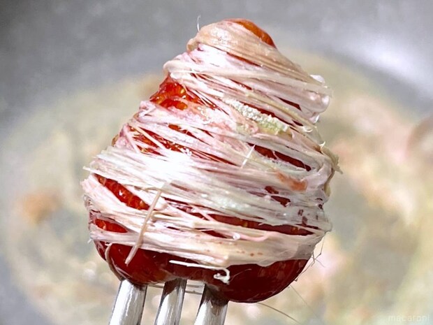 1. フォークをもう1本用意し、溶かしたマシュマロをすくう