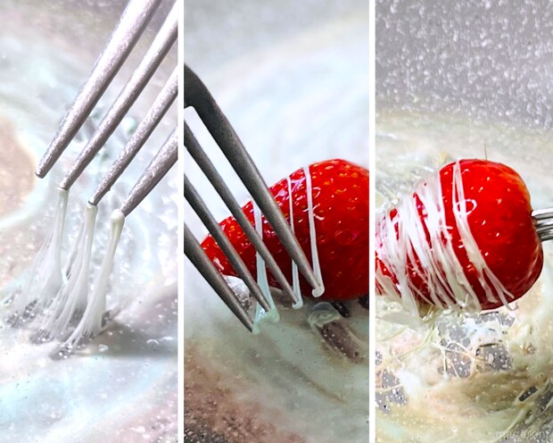 2. すくったマシュマロをいちごにかける