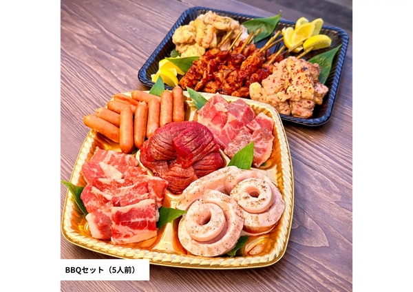 食材内容は、1人前の例として、牛カルビ80g、牛タン2枚、サムギョプサル70g、鶏の手羽元2本、鶏もも肉50g、焼き鳥(もも/たれ)2本、ウィンナー2本を用意。食材内容は変更される場合がある。