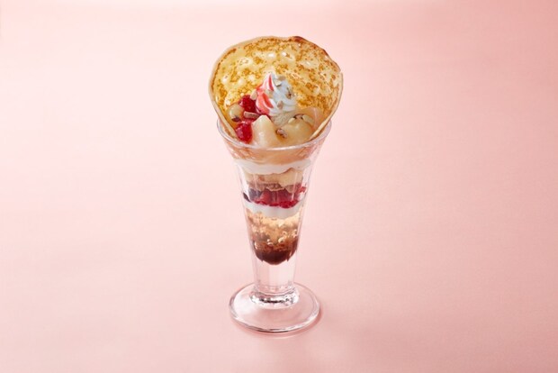 デザートには、白桃を主役にしたスイーツを用意。「ごろっと白桃とベリーのフロマージュパフェ」はジューシーな白桃とフロマージュクリーム、ベリーの酸味を組み合わせた一品で、カフェ利用にも適したメニュー。「魅惑のクレープ 白桃と3種ベリー」は、もちもち食感のクレープ生地で果肉とベリーを包んだ華やかなデザートとなっている。