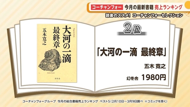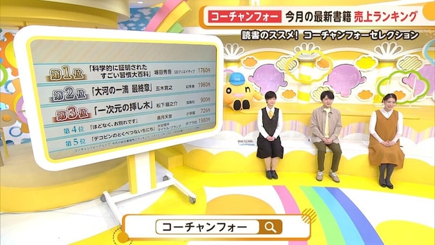 大野アナ:続いては「読書のススメ!コーチャンフォーセレクション」です。道内8店舗、関東で2店舗を展開するコーチャンフォーの、書籍売上ランキングベスト5をご紹介します。