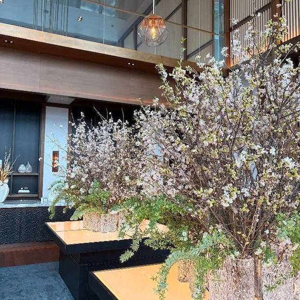 大きな桜がお出迎え。ゆったりと時間が流れるラウンジ