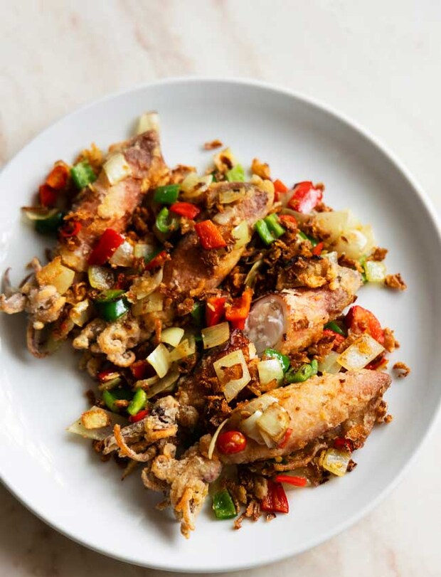 価格例/子持ちヤリイカとネギチップの塩胡椒炒め1,650円