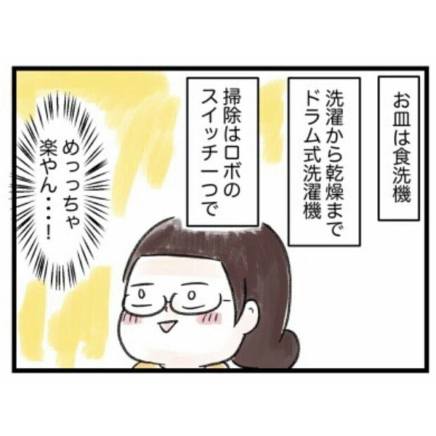 新居に家事が便利になる家電をそろえ、家族全員で意識をして生活のささいなことをカバーし合うよう改善し、とことんラクをする!と決めたこっさんさん。家事の比率は変化がありませんが、不満はその都度伝える、苦手な行事や家事は代わってもらうなど、こっさんさんの精神的・肉体的な負担は以前よりもかなり改善されていました。
