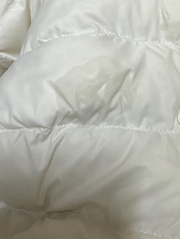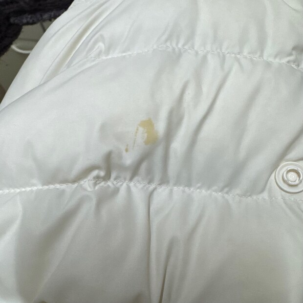 たまたま1週間前近く放置してた、ベストダウンについたシミ。