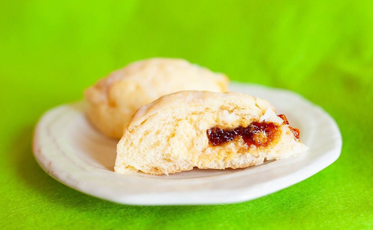 クッキー生地&グレーズのおかげで、外側はサクサクしています。が、一方の内側はカスタードクリームとカラメルフィリングの水分でしっとりしていますね。中と外の食感のギャップがおもしろいです。