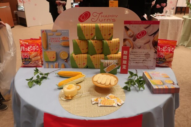 亀田製菓が展開する「ハッピーターンズ」と「タネビッツ」では、4月1日に「関西だし風かきのたね」「ハッピーターンズ スイートコーン」を発売する。どちらも9月頃までの期間限定となっている。