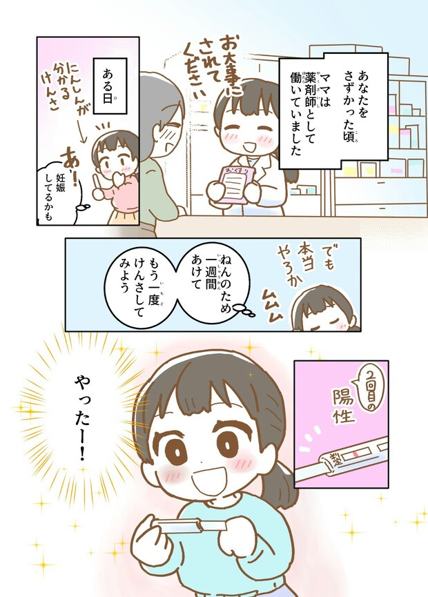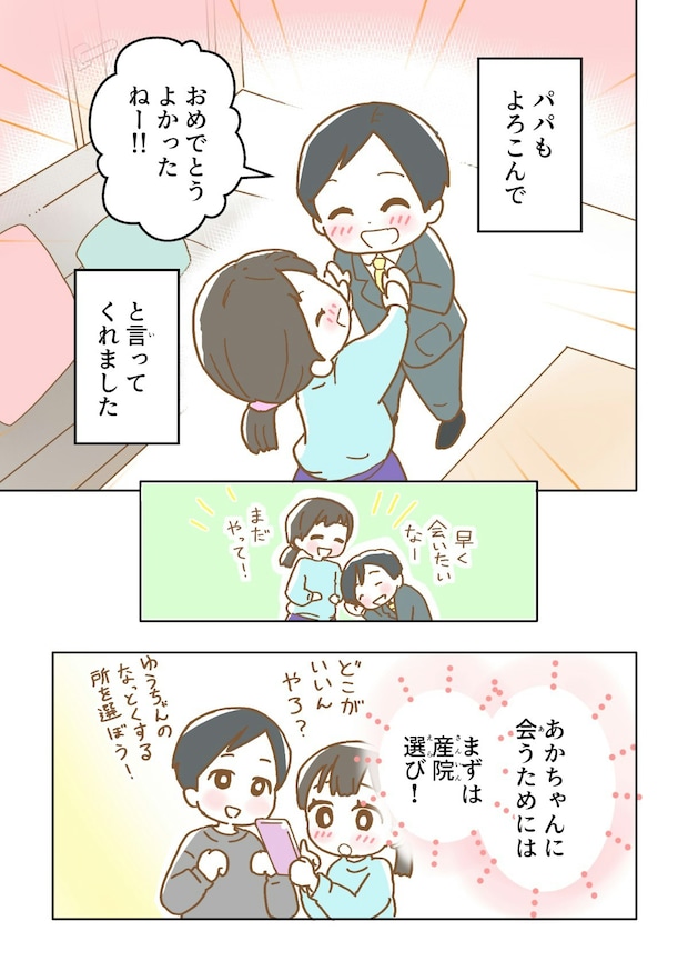 待望の妊娠が判明し、夫婦そろって嬉しい気持ちでいっぱいの様子が伝わってくるエピソードでした。