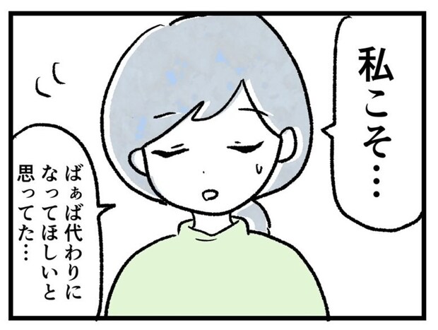 喜美子さんの謝罪を聞いたまゆさんは、自分も「ばぁば代わりに」と期待していたと気づき、素直に謝りました。