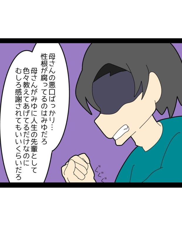 幸せな結婚生活を思い描いていたみゆさんは、夫の実家での暮らしに絶望。義母に愚痴を言われ、いじめられつらい毎日を過ごすのでした。そのつらさを夫・かずまさんに伝えても受け止めてもらえず、義母に強く影響されている姿に、みゆさんは孤独を深めてしまいます。