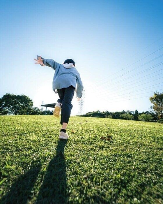 子どもの足元から仰ぐようにカメラを構えると、より躍動感がUP。